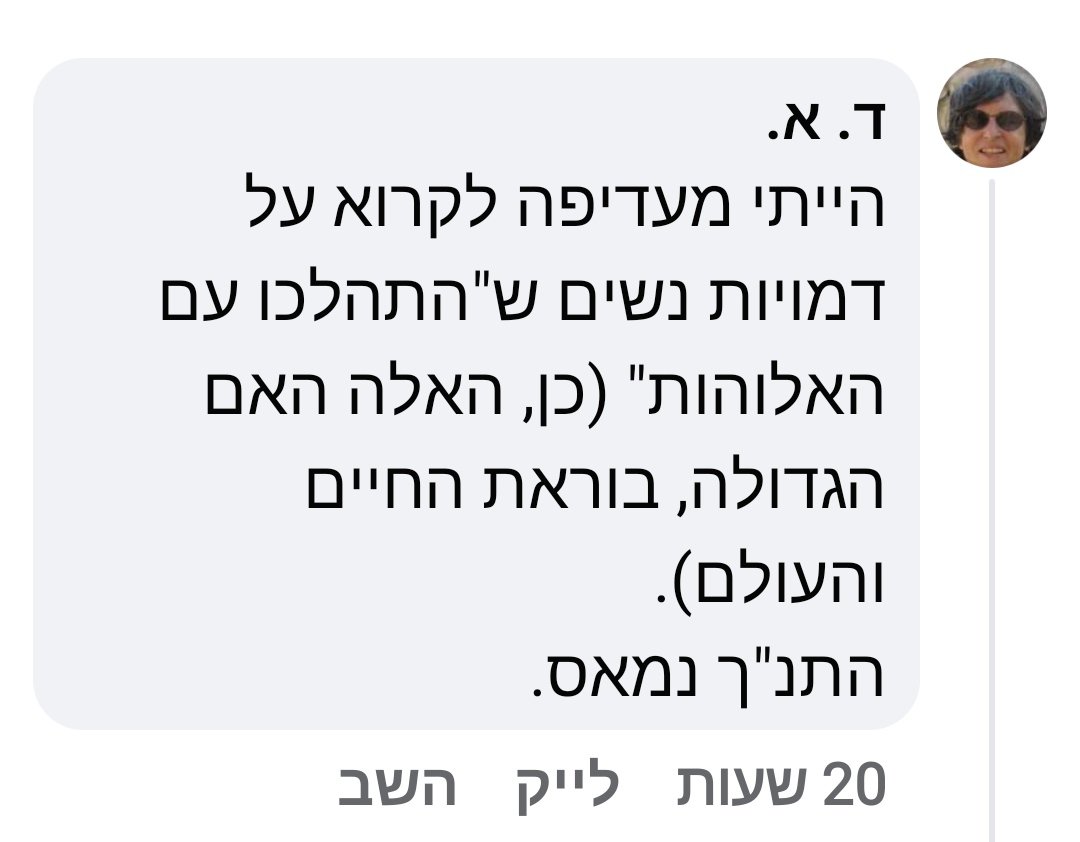והתגובה השנייה מתחברת לזה, מישהי שמזדהה בצחוק כמכשפה. אכן, הכישוף יוחס תמיד לנשים. גם בתורה כתוב 'מכשפה לא תחיה', דווקא בלשון נקבה.