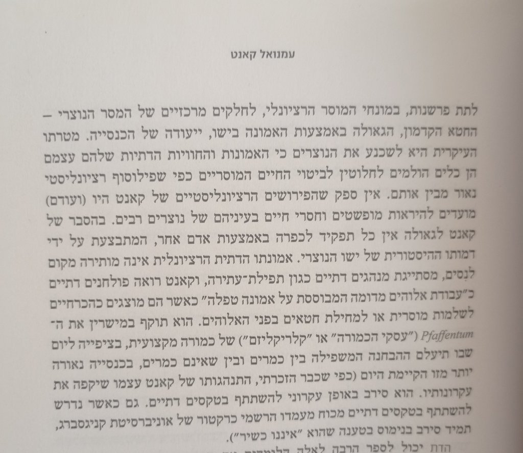 הקטע השני, עדיין בהקדמה הוא על הדת, שלדעת קאנט צריכה להיות 'בגבולות התבונה בלבד'. אבל האם זה אפשרי בכלל? והאם זה עדיין יכול להיחשב 'דת'? לי לא נראה כל כך.