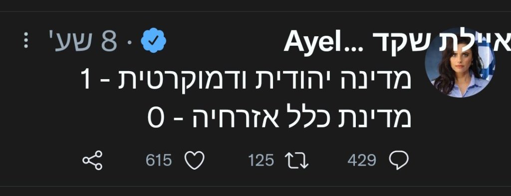 אני לא עקבתי את פרטיו, אבל אם אומרים בשמאל שהוא רע, אז הוא רע. אבל הצהלה הזו של שקד צורמת בעיניי. מה זה להיות נגד 'מדינת כל אזרחיה'? כל מדינה דמוקרטית צריכה להיות מדינת כל אזרחיה. זה ביי דפנישן. אלא מה? בארצנו התקבלו כל מיני מונחים שגורים שמשתמשים בהם, בלי באמת לרדת לעומקם. זה אחד מהם. ואחר הוא 'שמירת הסטטוס קוו'.