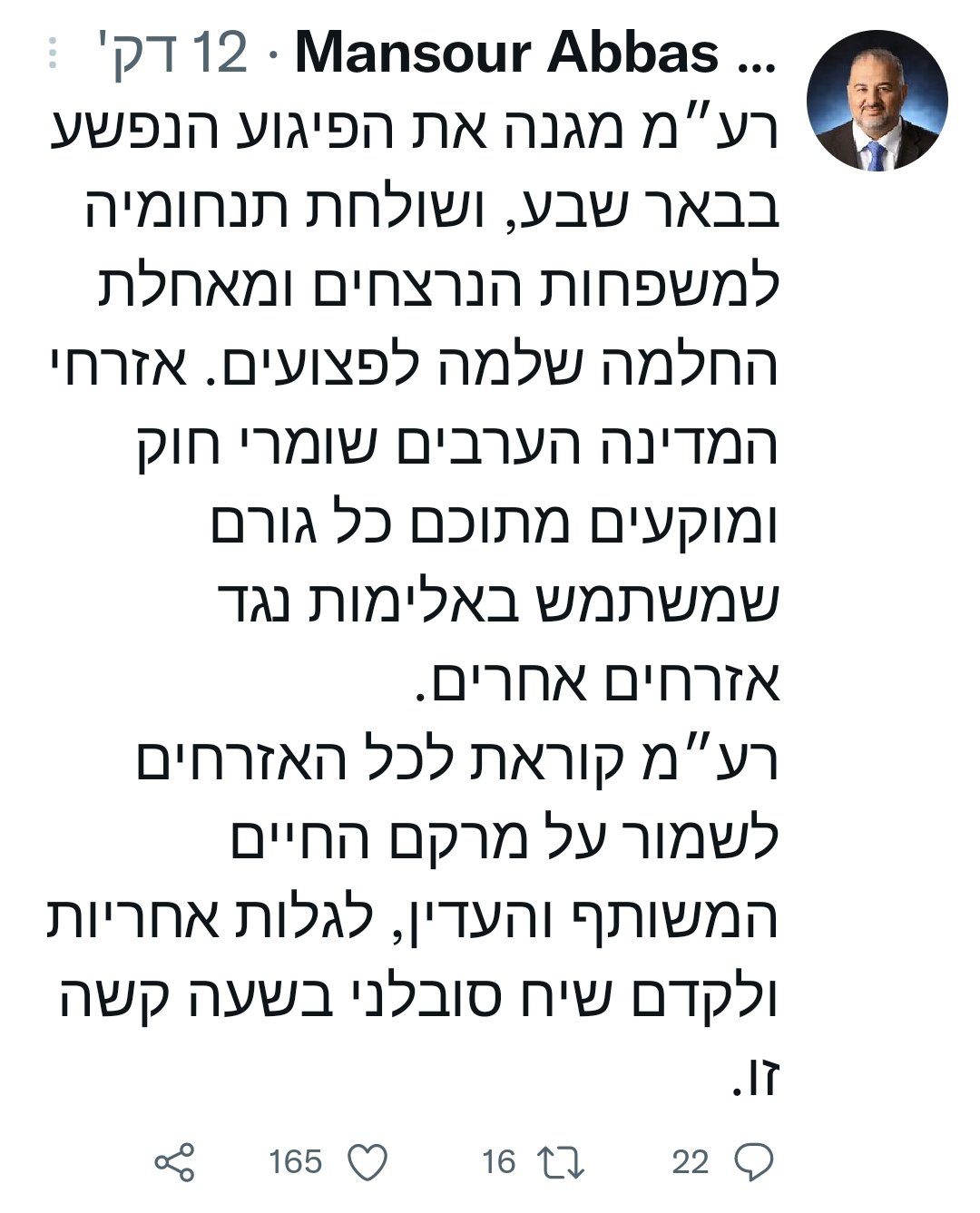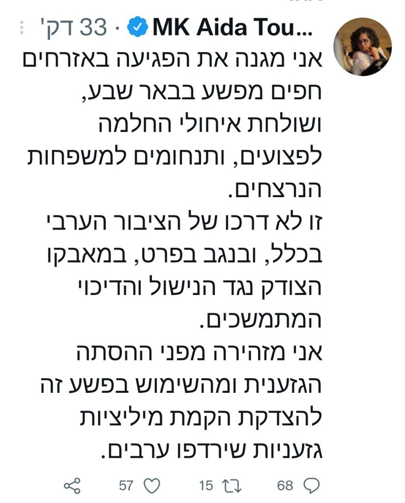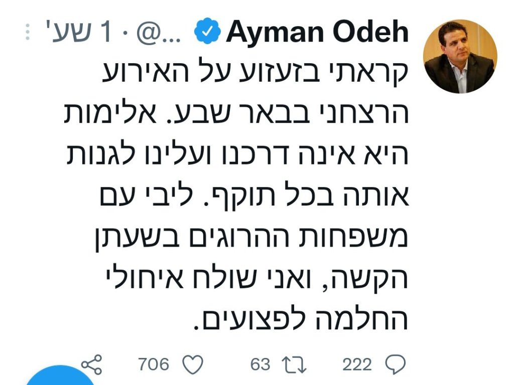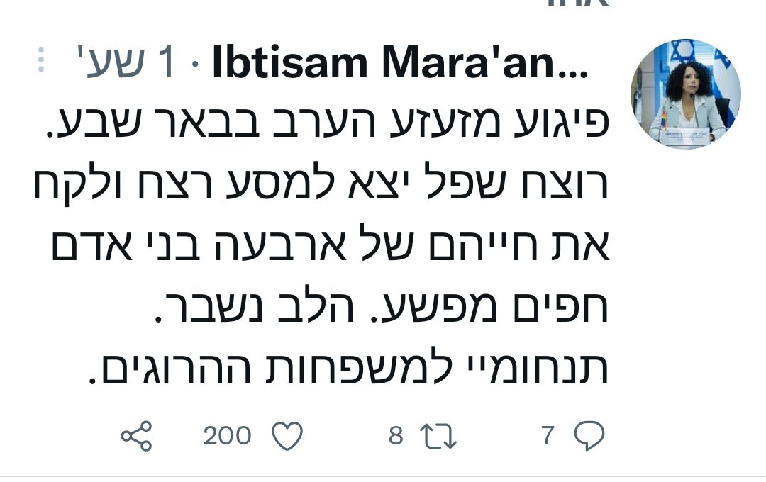 ובינתיים פיגוע בב"ש, ואני לא יודע אם חשוב למישהו, אבל חה"כ הערבים מגנים.