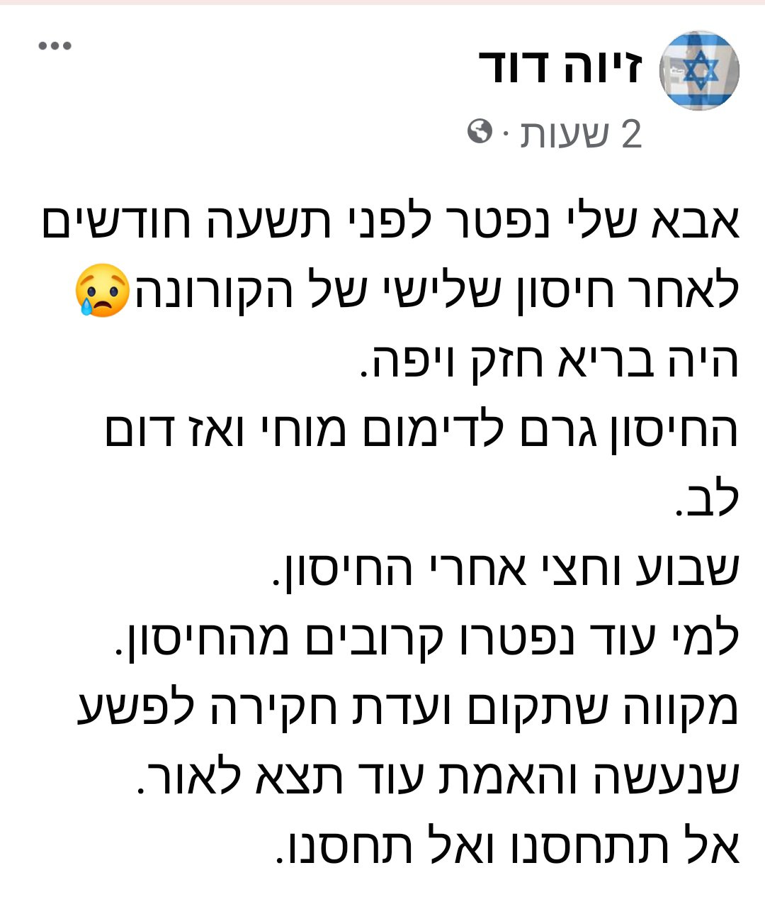 ואיך אני יודע שאין אכפתיות? כי באופן קבוע מתעלמים מנפגעי החיסון, שלהם דווקא כן אפשר לעזור. למשל, שני המקרים האלה מבוקר זה –