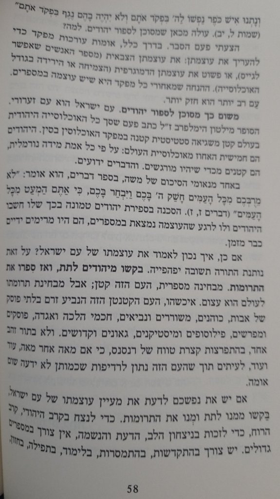 בקטע ארוך הרב זקס מדבר בשבח השיחה, ובסעיף אחד שם הוא אומר שדת ישראל מיוסדת על הקשבה, בניגוד לראייה וגם בניגוד לציות. אני מצאתי את זה יפה. (עמ' 178-179).