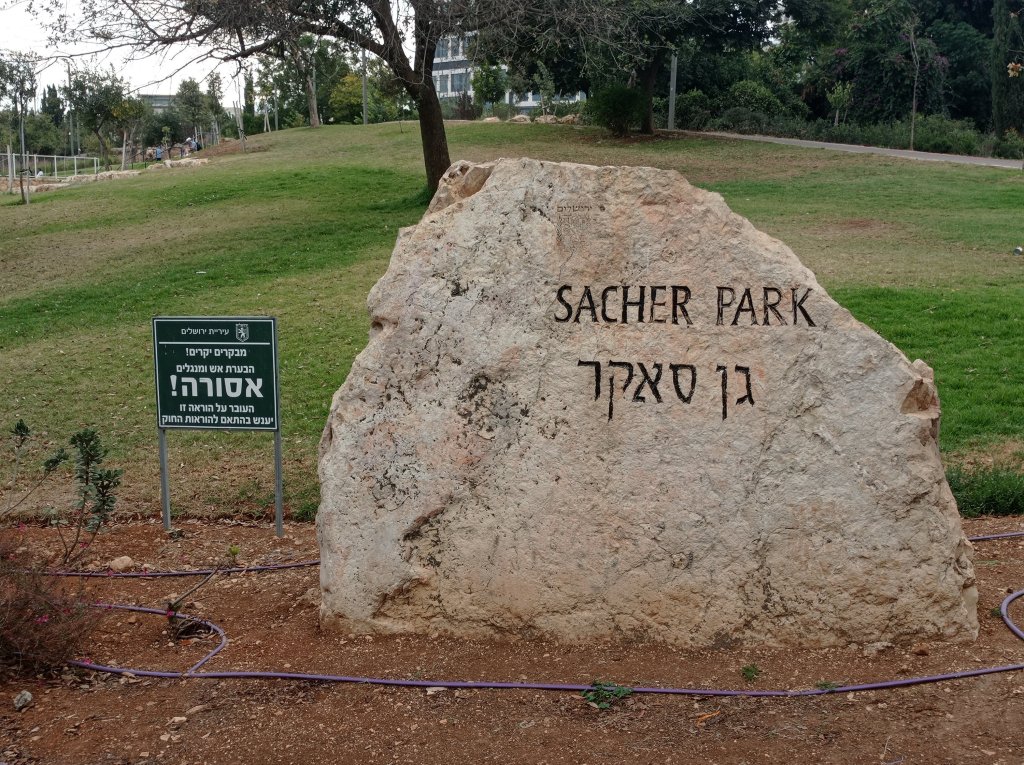טיול קצר לגן סאקר, צילמתי בדרך, לא נהניתי, לא אחזור על כך, לפחות לא הרבה. שם – חרדים הרבה. תמונת הרבי מלובביץ' בכניסה. ומלבד זה מה זה 'גן סאקר' אם לא גם הפתי?