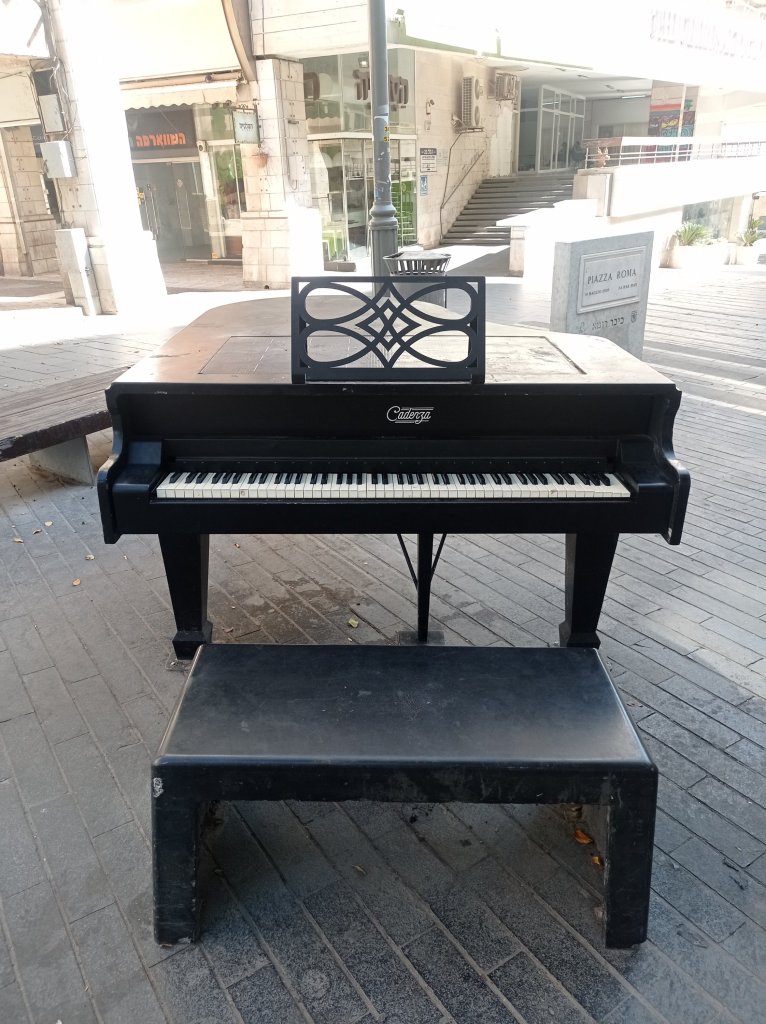 עשו משתה אתמול בלילה ולא אמרו לי?פעם אחת אצלם את הפסנתר הזה, יש עוד כמה כאלה בעיר.ואיך אפשר בלי צילום המנוף המסורתיבגן יושב ירא ה' בודד, כמוהו כמוני. גם אני מתיישב לאיזו שעה, מביט, מתבונן, וכותב את שירי 'אומרים לי – בחר'. היושבת בגנים השמיעיני קולך.גרפיטי בדרך חזרה, צודקים.וליד ביתי נמצאת גם הכנסייה הזאת. האם אכנס לשם יום אחד? בינתיים לא ממש בא לי לעשות זאת. מתחם עבודה זרה, אתם יודעים.