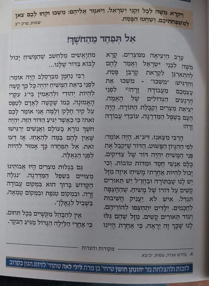 "רבי אליעזר אומר: אם ישראל עושין תשובה – נגאלין, ואם לאו – אין נגאלין. אמר ליה רבי יהושע: אם אין עושין תשובה – אין נגאלין? אלא, הקדוש ברוך הוא מעמיד להן מלך שגזרותיו קשות כהמן, וישראל עושין תשובה ומחזירן למוטב. תניא אידך: רבי אליעזר אומר: אם ישראל עושין תשובה – נגאלין, שנאמר שובו בנים שובבים ארפא משובתיכם. אמר לו רבי יהושע: והלא כבר נאמר חנם נמכרתם ולא בכסף תגאלו, חנם נמכרתם – בעבודה זרה, ולא בכסף תגאלו – לא בתשובה ומעשים טובים….